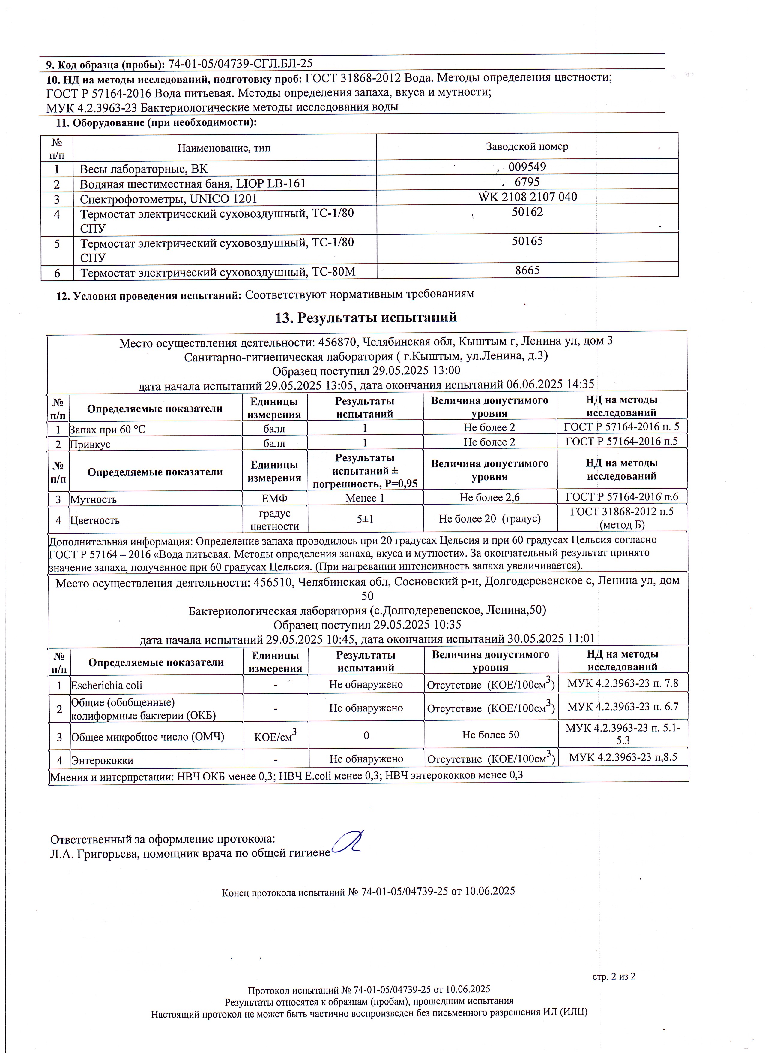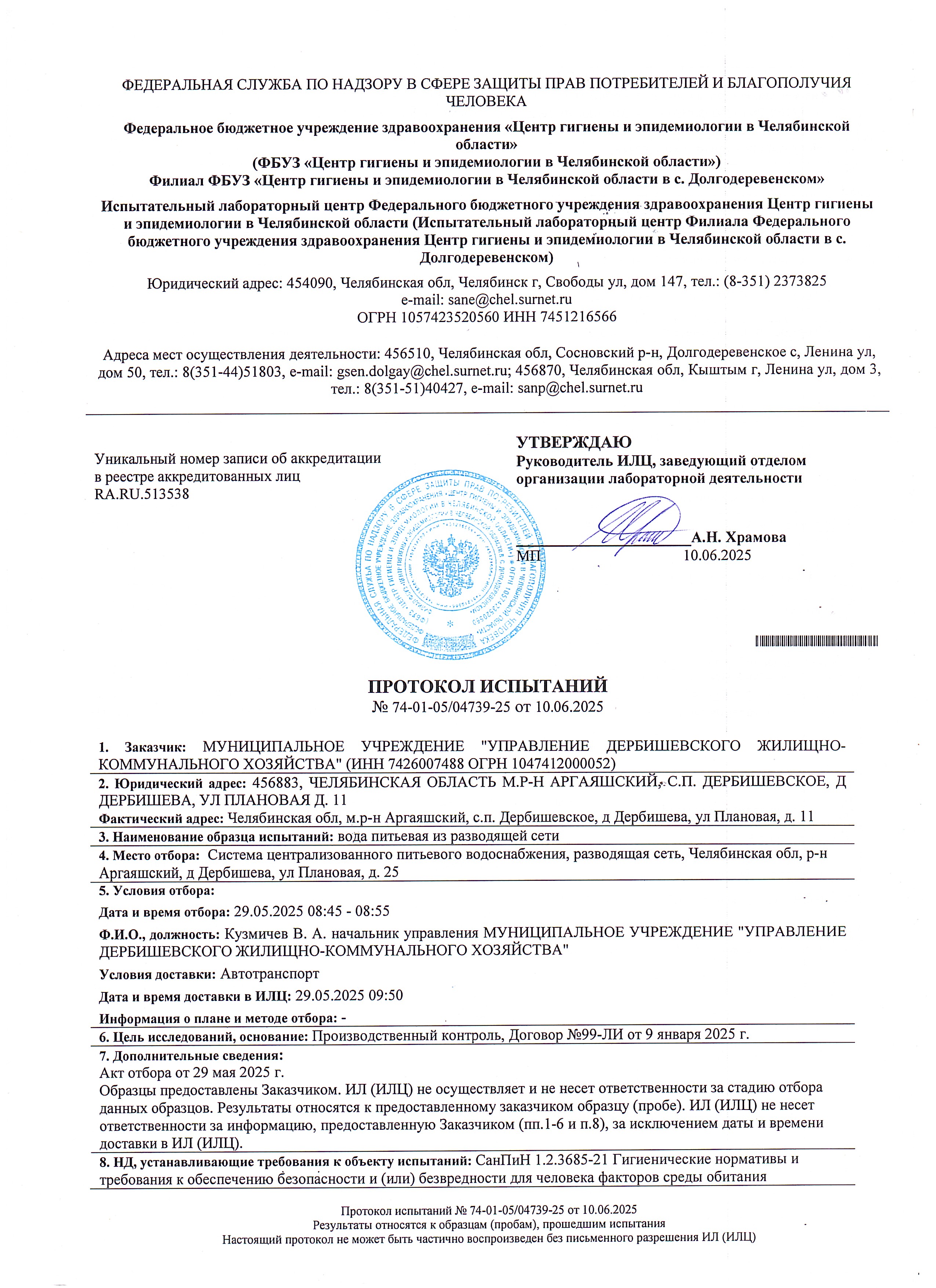 Протокол испытаний №74-01-05/04739-25 от 10.06.2025